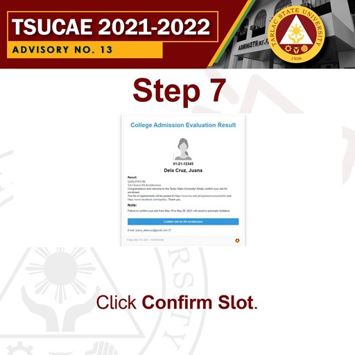 𝗖𝗼𝗻𝗳𝗶𝗿𝗺𝗮𝘁𝗶𝗼𝗻 𝗼𝗳 𝘀𝗹𝗼𝘁𝘀 will start on 𝗠𝗮𝘆 𝟭𝟵, 𝟮𝟬𝟮𝟭 (3:00 PM) 𝘁𝗼 𝗠𝗮𝘆 𝟮𝟵, 𝟮𝟬𝟮𝟭 (11:59 PM).