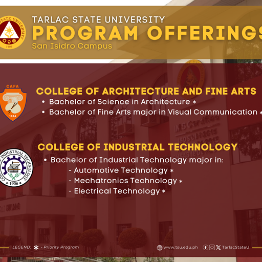 To learn more about the program you wish to apply to, you may also check out this link (https://www.tsu.edu.ph/academics/colleges/)