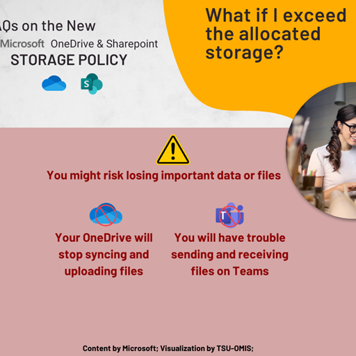Due to these changes to the Microsoft 365 pooled storage policy for educational institutions, all students, faculty, and personnel are encouraged to check how much data storage they are using and safeguard important files by downloading them before July 2025.