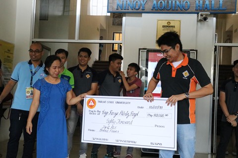 On May 7, during a flag raising ceremony at the Main Campus, President Myrna Q. Mallari and Dean Galvez handed him a check amounting to P80,000 as financial incentive from the university.