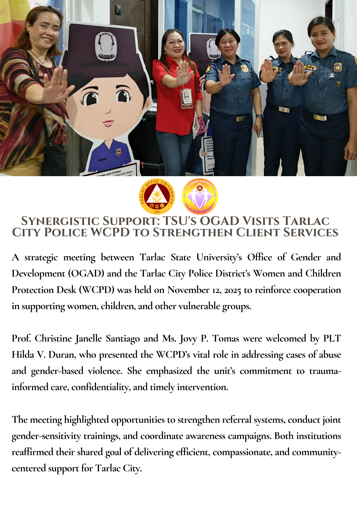Synergistic Support: TSU's OGAD Visits Tarlac City Police WCPD to Strengthen Client Services